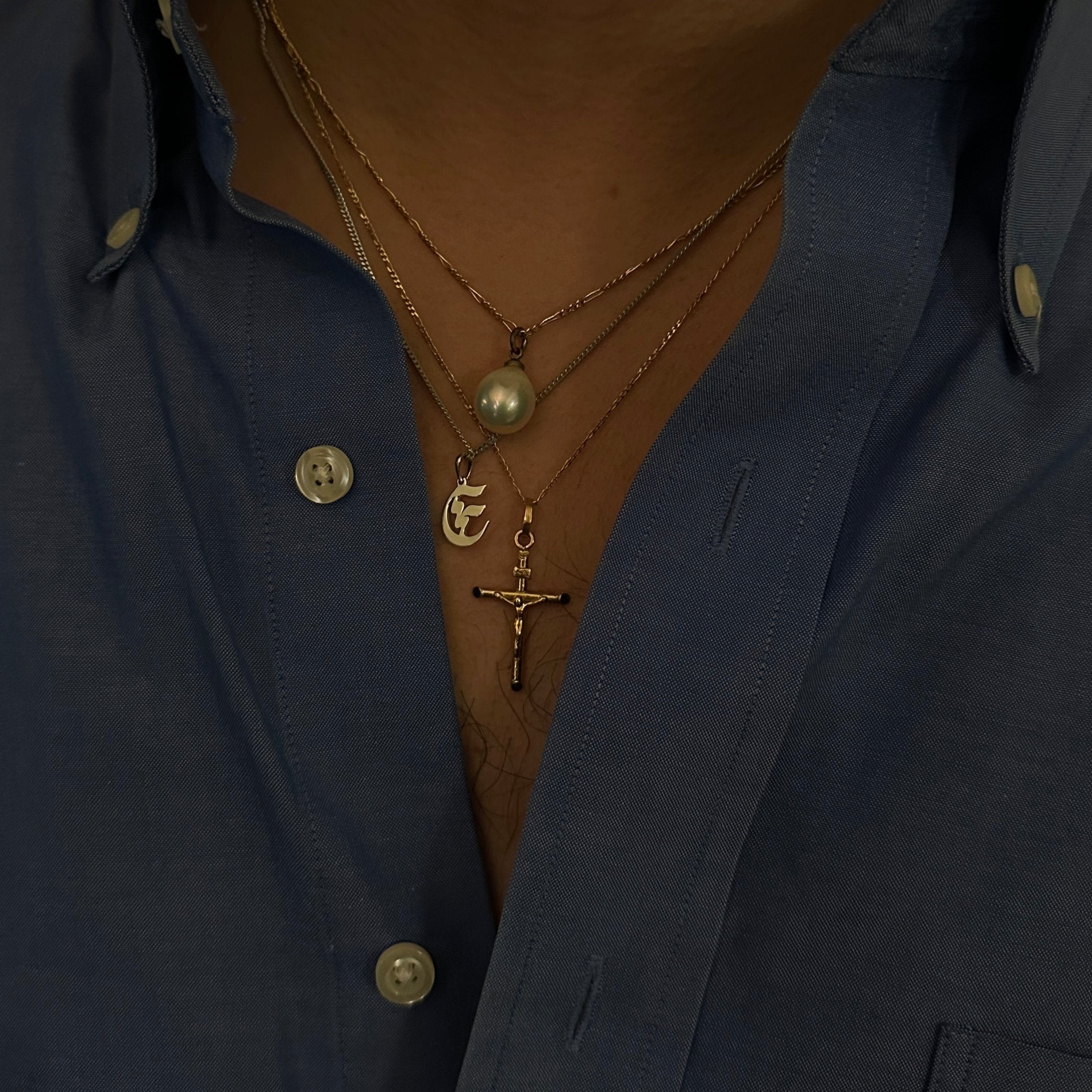 The AK Signature ID Pendants feature fully custom lettering designed by Kapono Chung for Anna Kikue, offering a new way to express your story and identity. Inspired by the graceful forms of Japanese calligraphy, the enduring beauty of ancient scripts, and the bold graphic elements of Black Letter found in Hawaiian jewelry, this lettering pays homage to cultural heirlooms while reimagining them as modern classics.