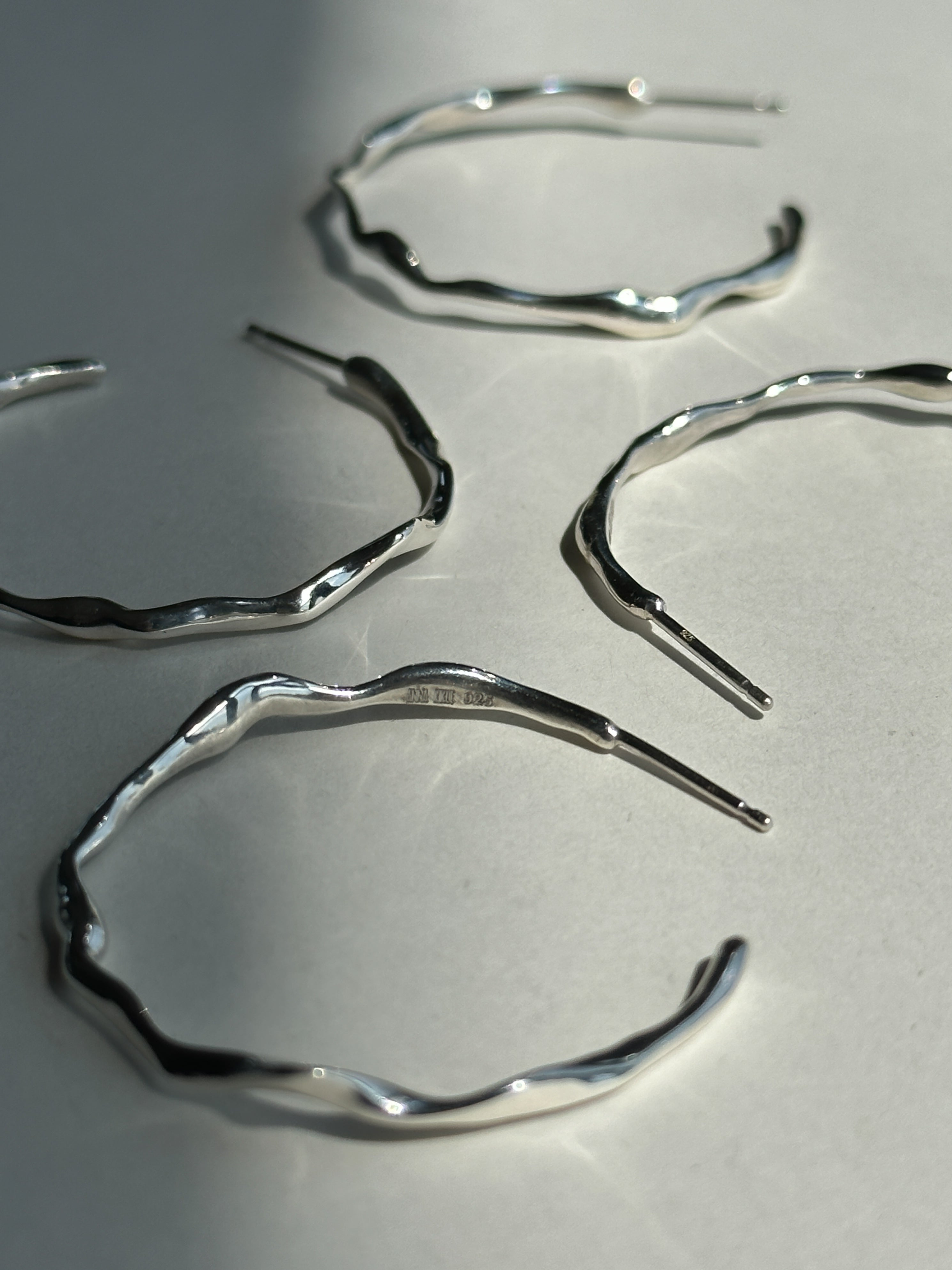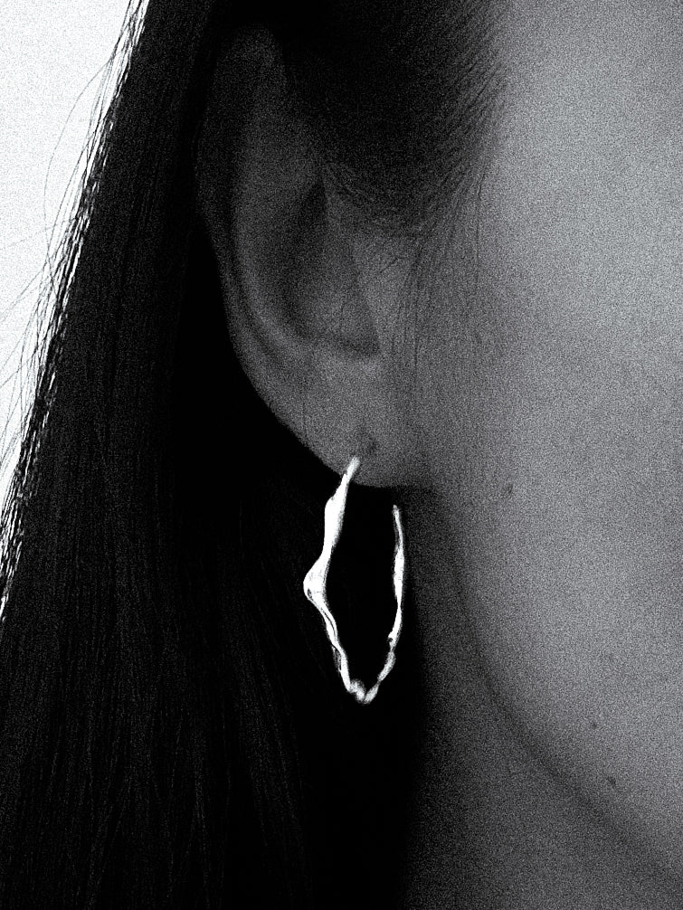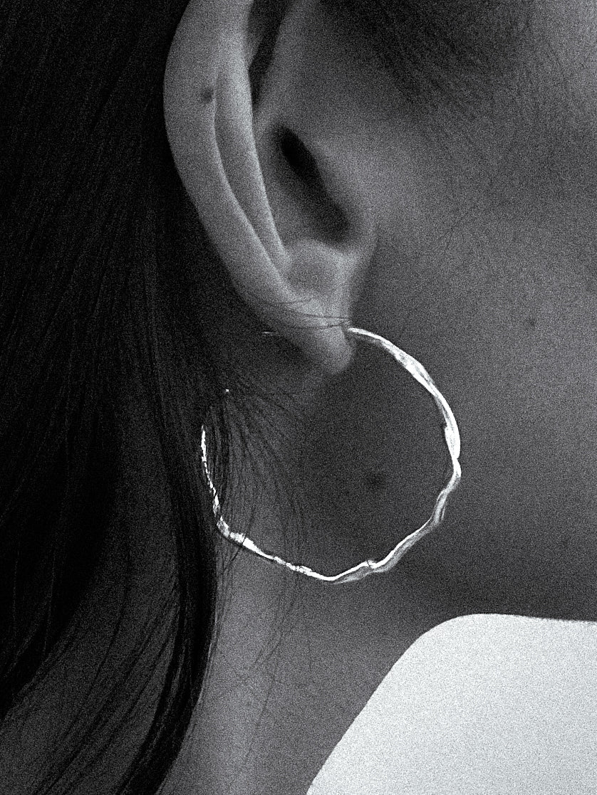 The Catharsis Hoops Large features an open hoop earring set with a wavy, organic surface.