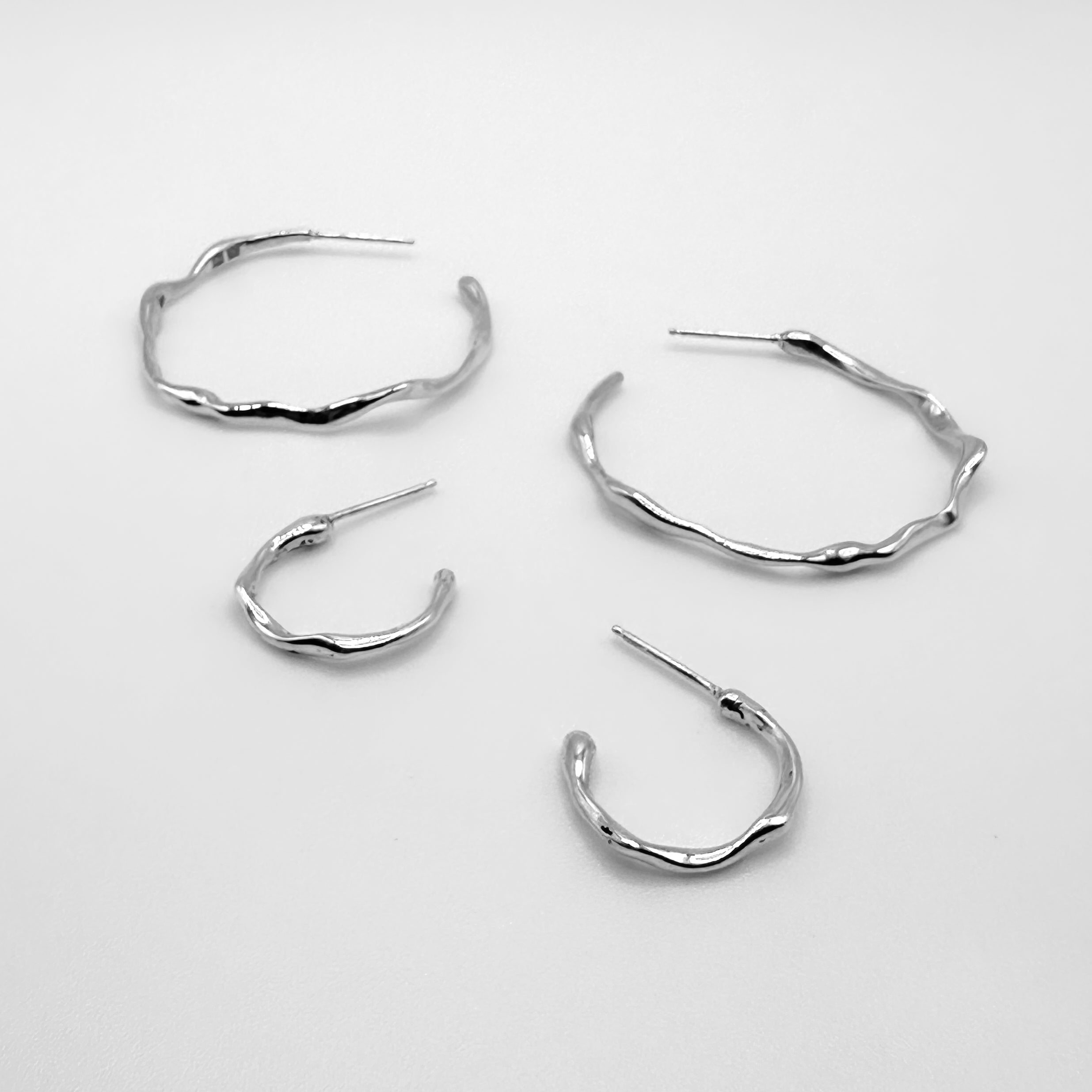 The Catharsis Hoops Small features an open hoop earring set with a wavy, organic surface.