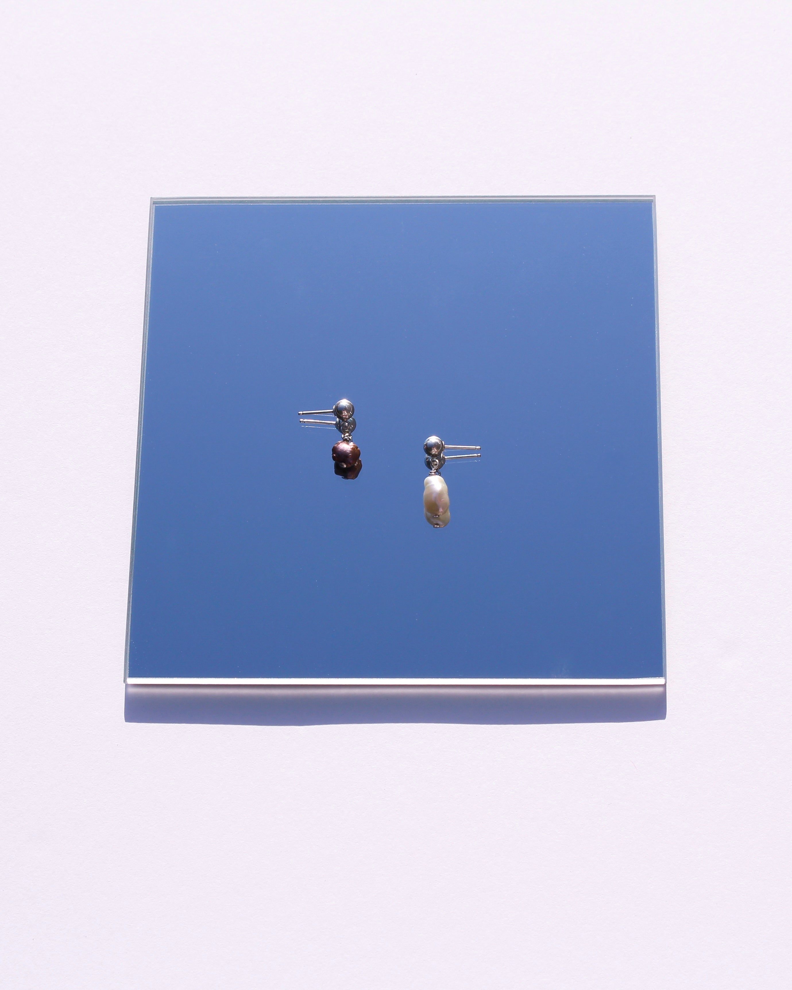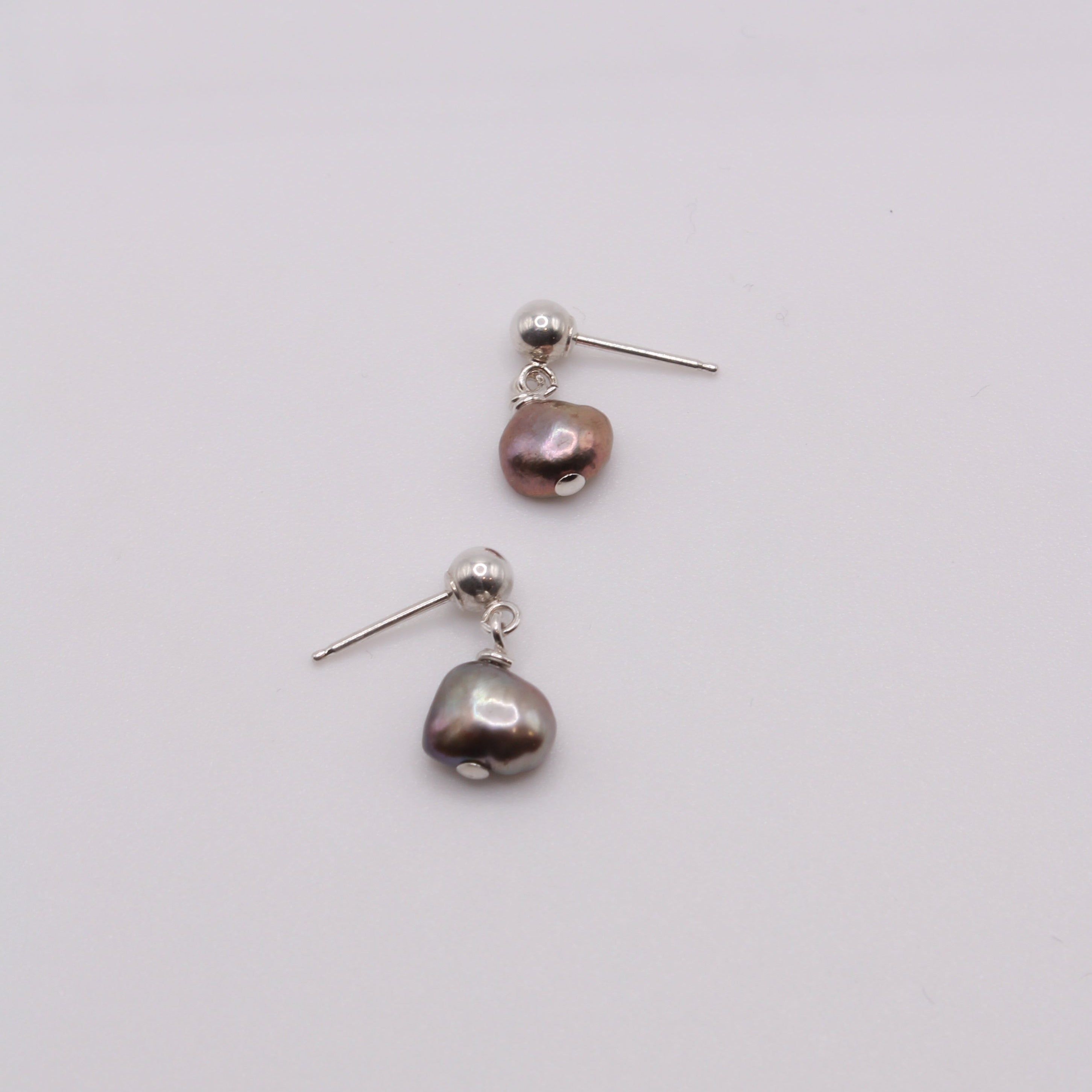 The Escape Earrings features a small pearl attached to a 4mm ball stud.