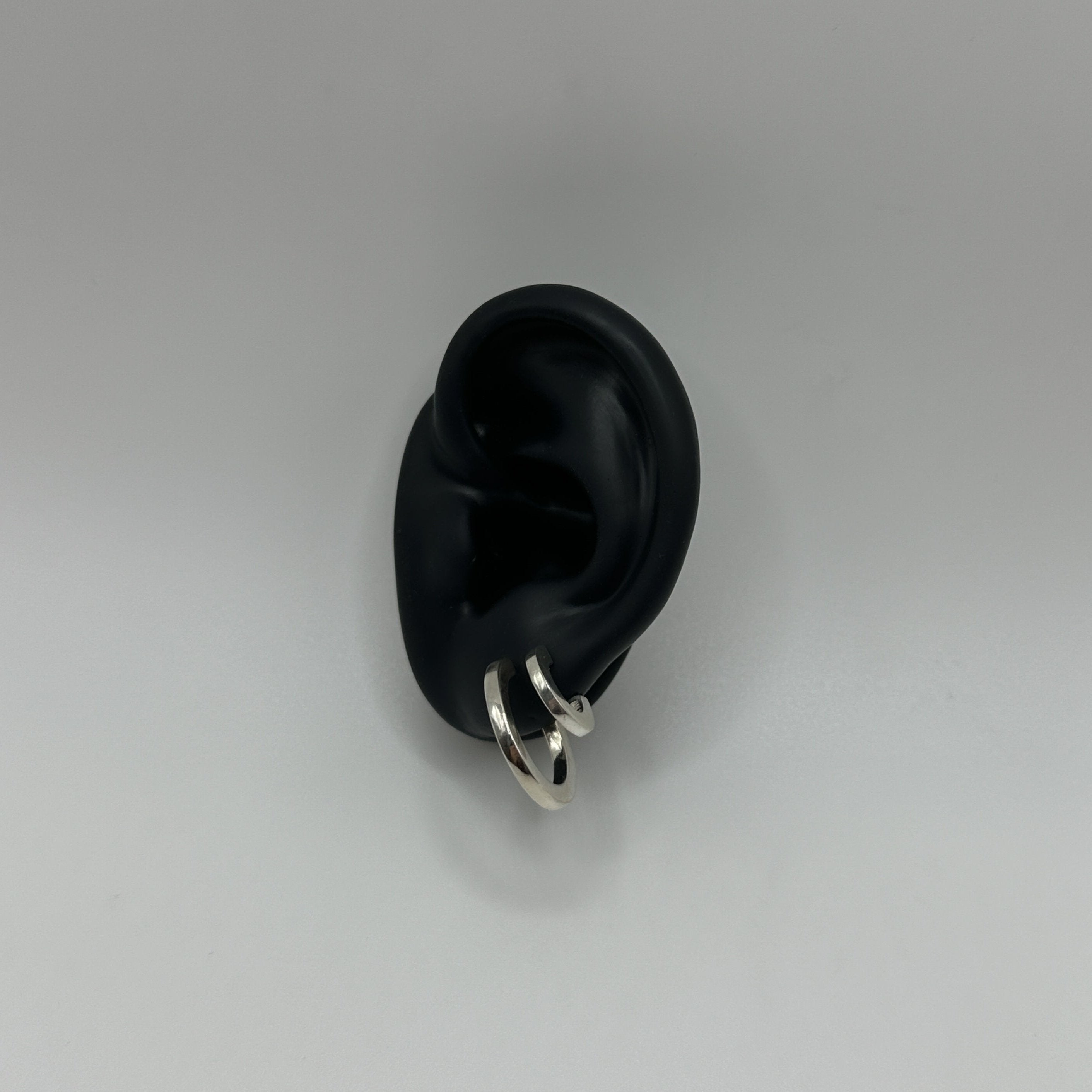 The Extra Mini Block Hoop pairs beautifully with the Mini Block Hoop or Pierced Mini Block Hoop for an asymmetrical or stacked earring look.