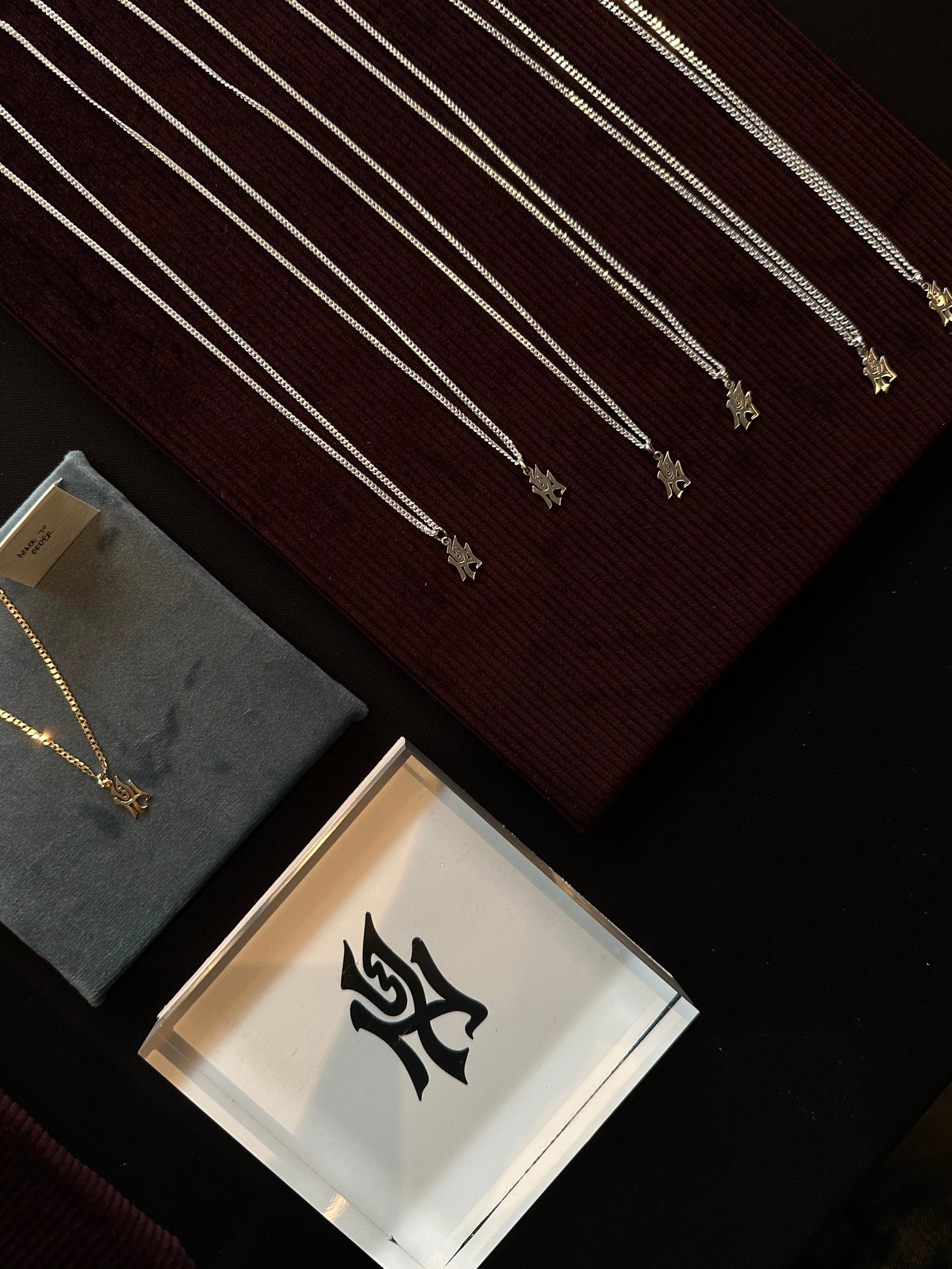 Inspired by the graceful forms of Japanese calligraphy, the enduring beauty of ancient scripts, and the bold graphic elements of Black Letter found in Hawaiian jewelry, this lettering pays homage to cultural heirlooms while reimagining them as modern classics.
