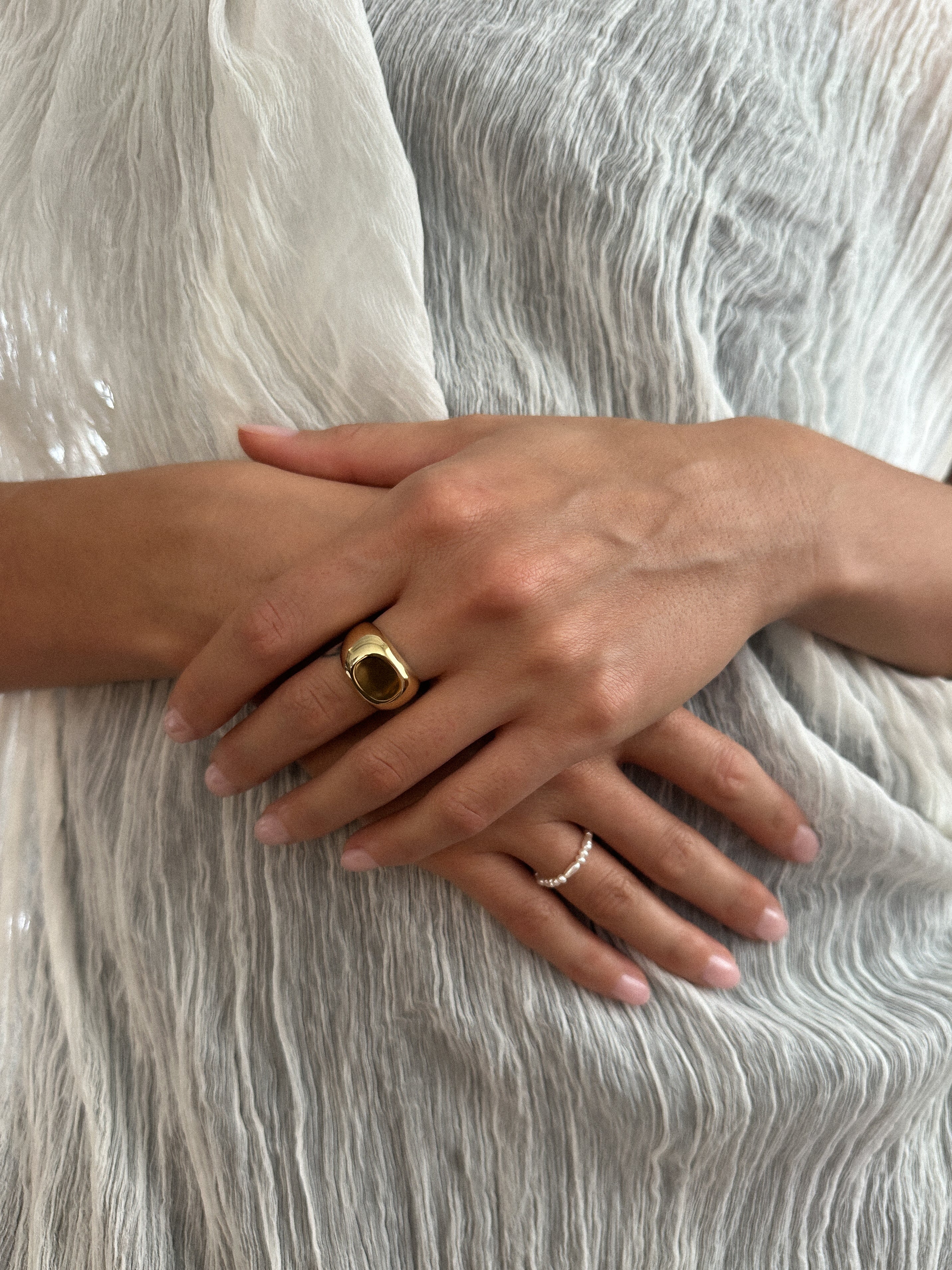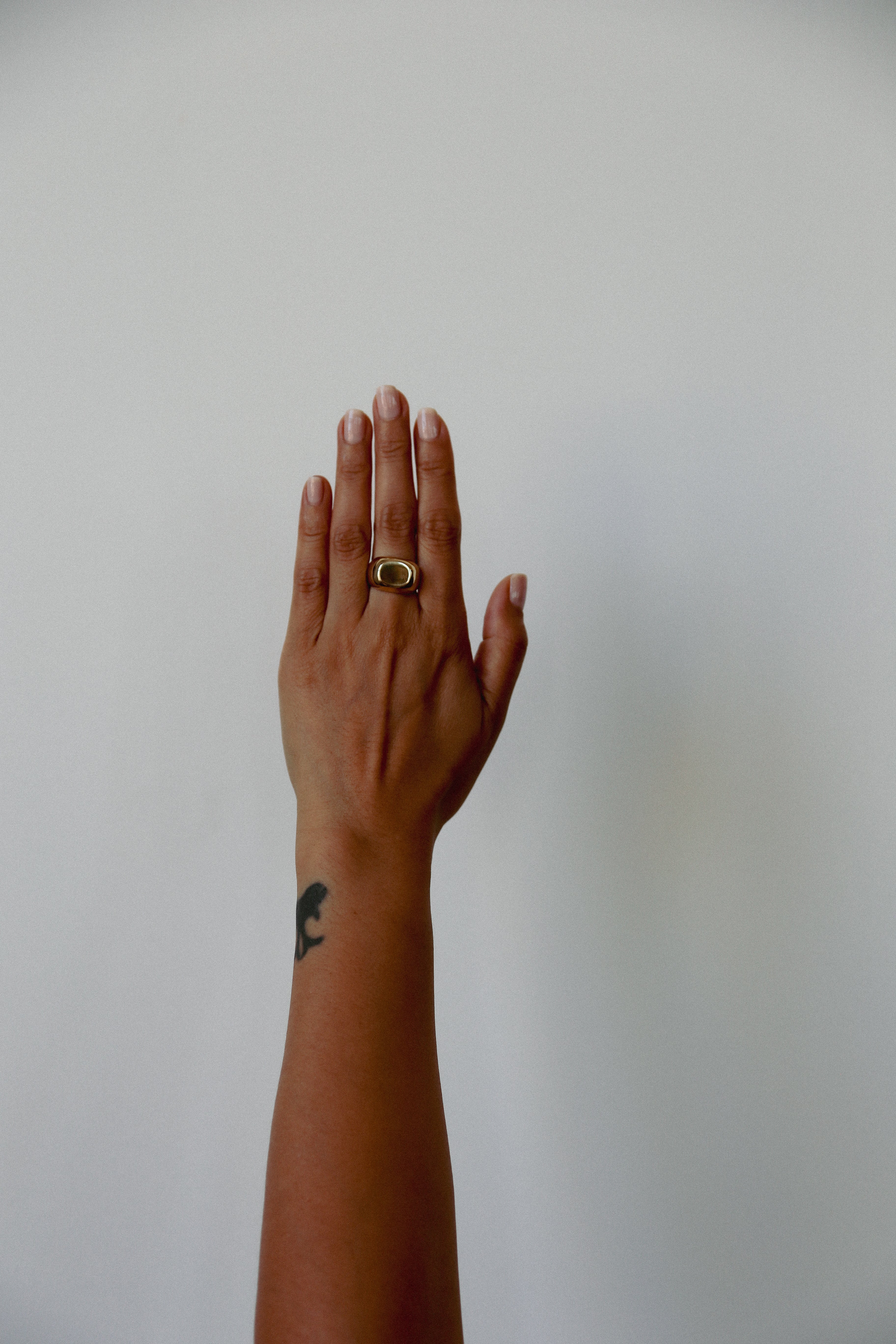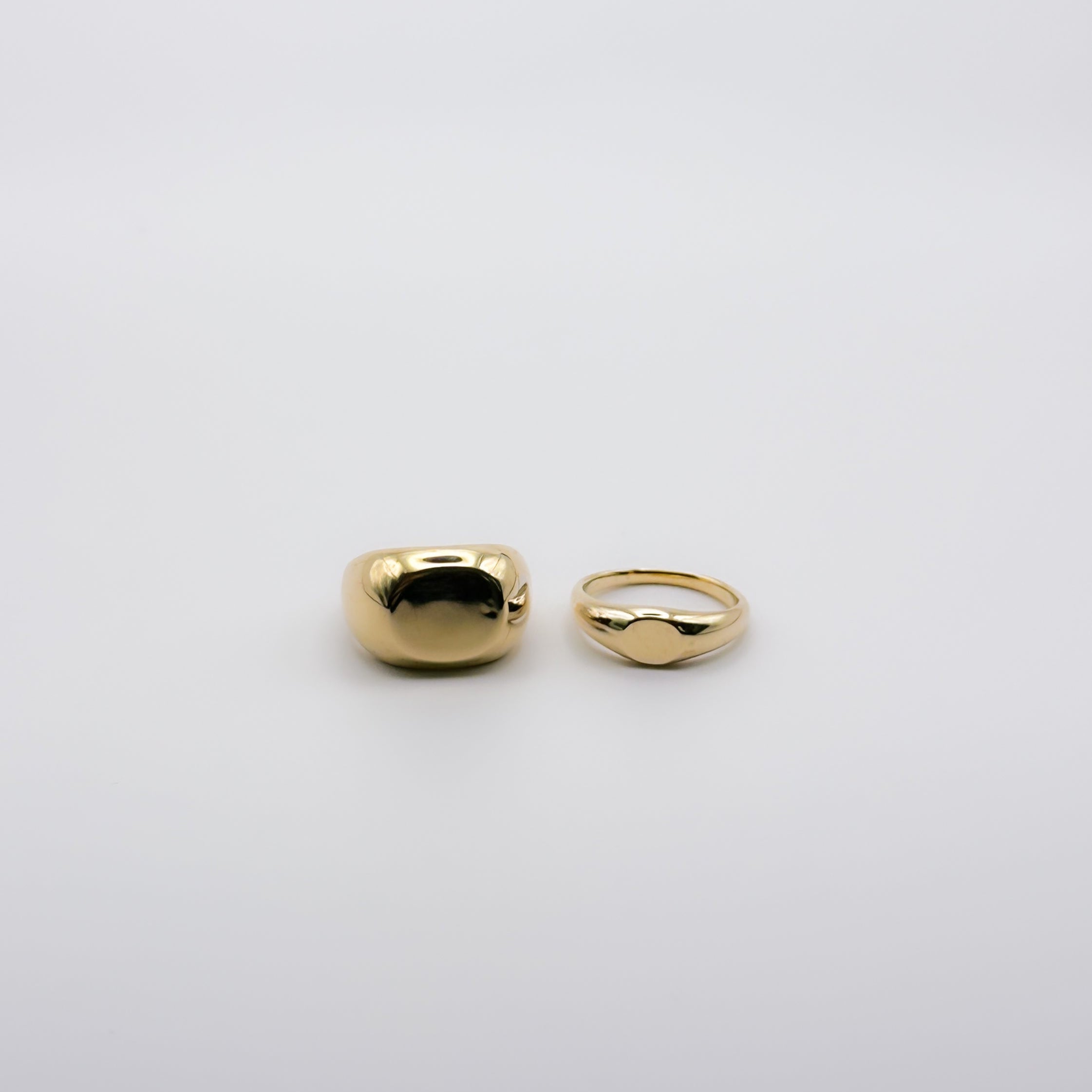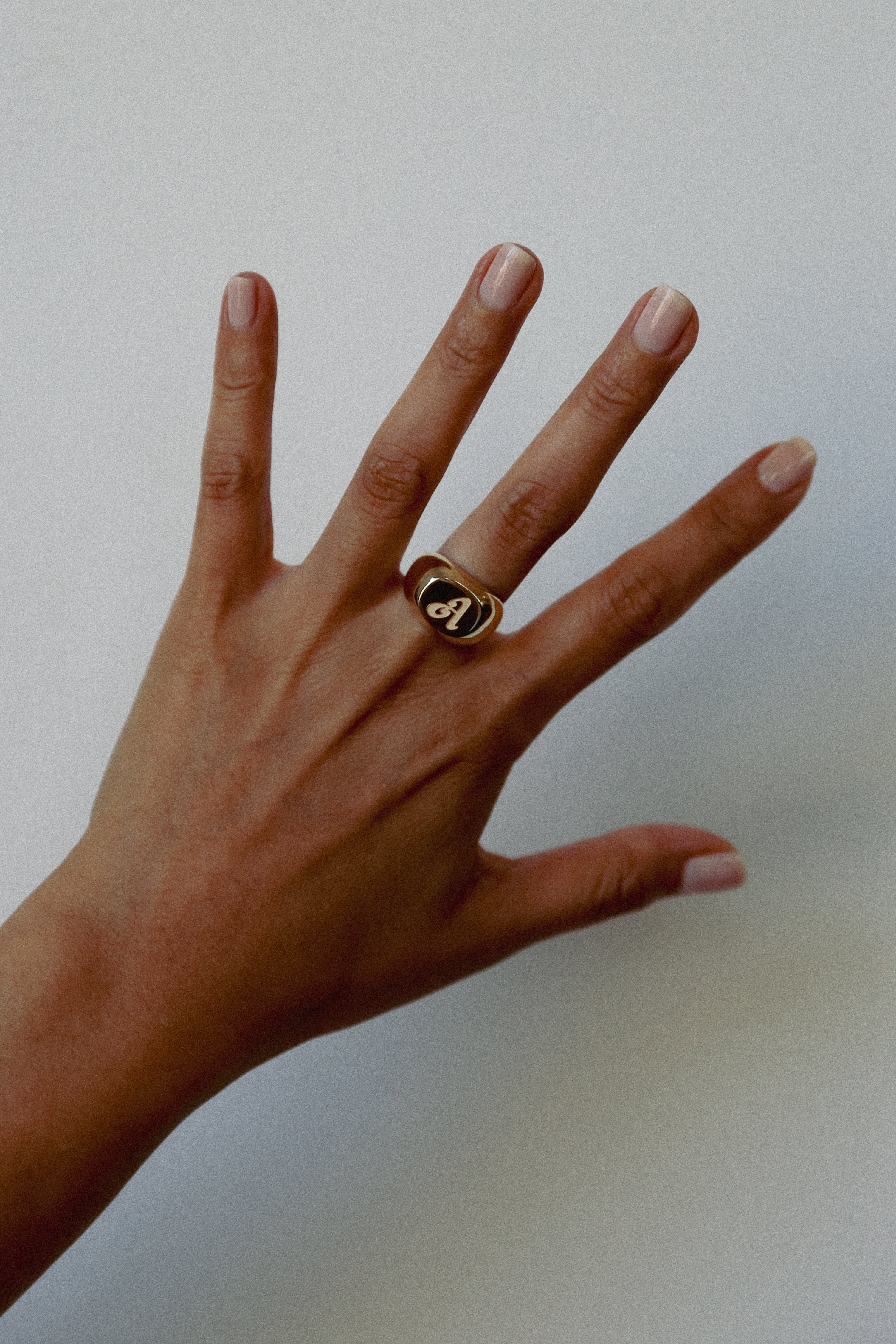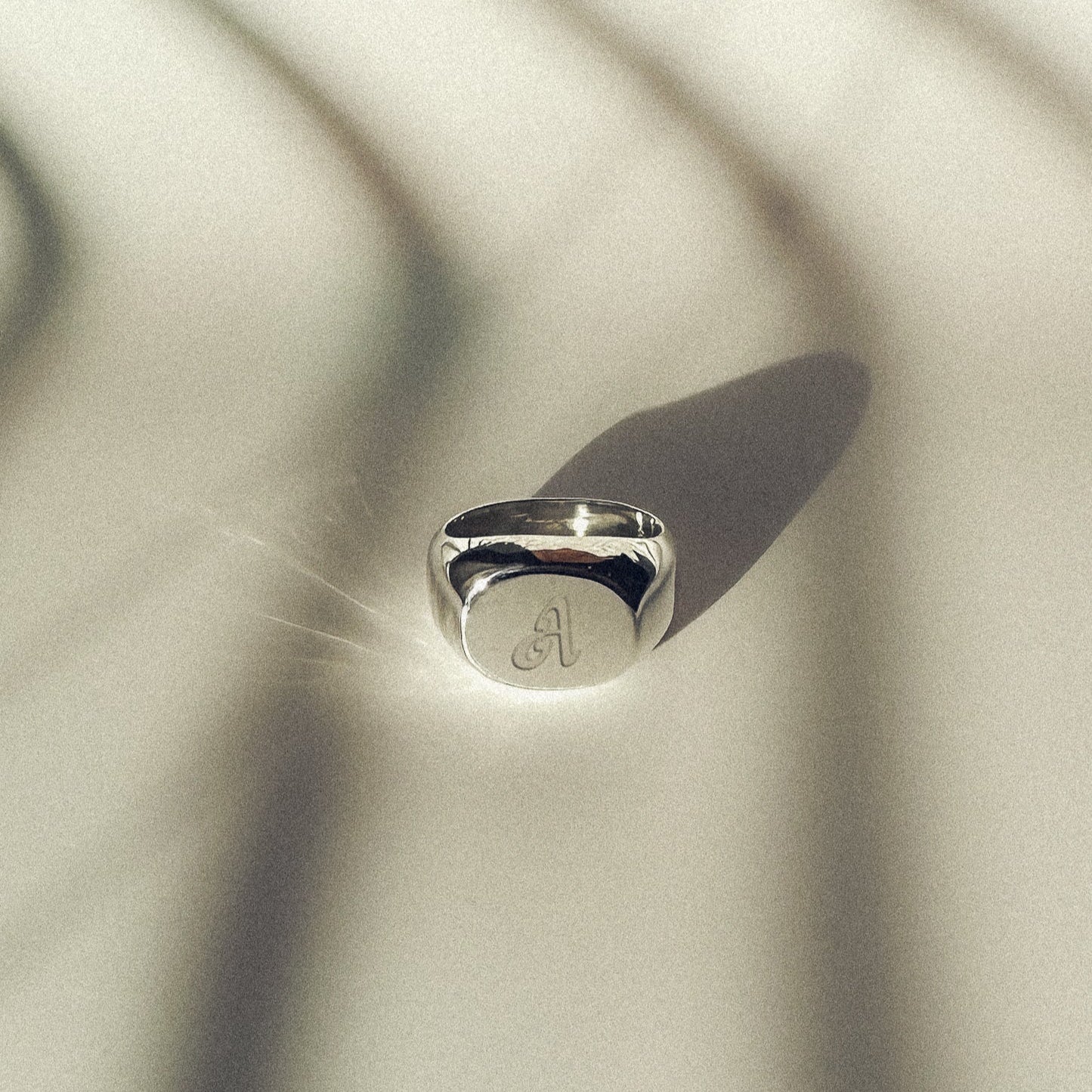 A bold statement of identity, the Signature Signet Ring features a chunky, sculptural design with a flat, rounded-edge rectangular top, perfect for personalization.